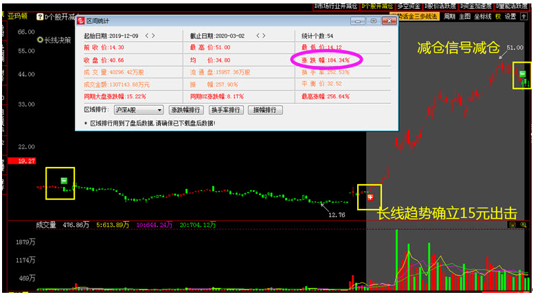 二是 跟着开仓信号进场后,不要去尝试猜测趋势能走多远,最高点在哪,因为没人能做到。趋势一旦确立,就会沿着既定的方向运行,不追求在在最高点离场,而是等减仓信号确立后,趋势终结后卖出。