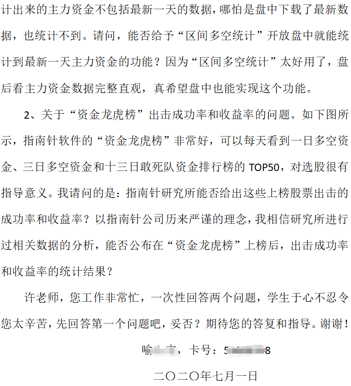 从信中可以看到您是一个学习认真、思维缜密的投资者,祝您今后投资越来越好。今后学习方面如有问题及时联系您的专职客服或反馈给我们。